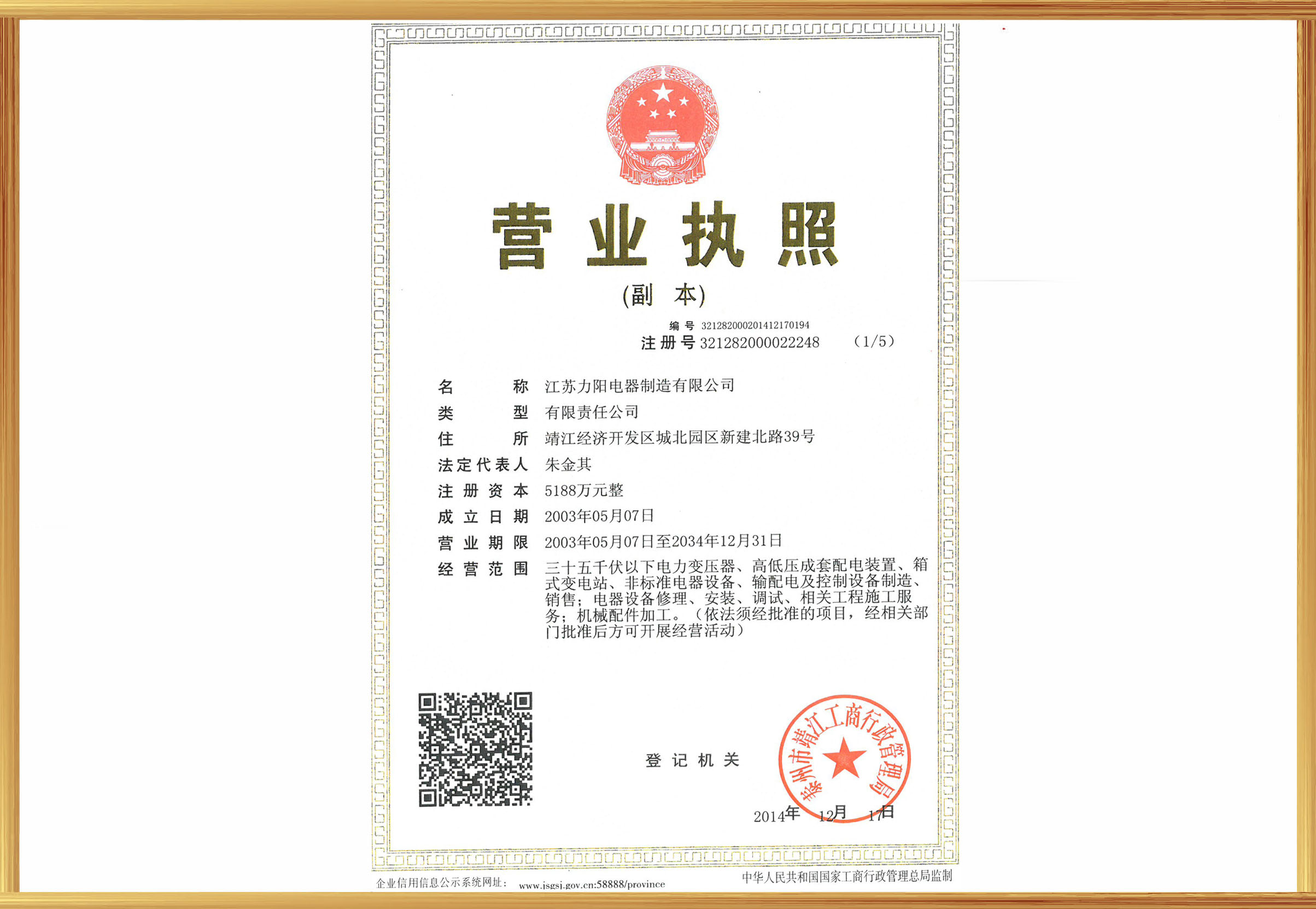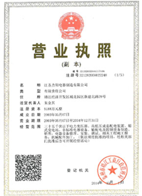江蘇力陽電器制造有限公司 地址: 江蘇省靖江經濟開發區城北園區新建北路39號 電話:0523-89112658